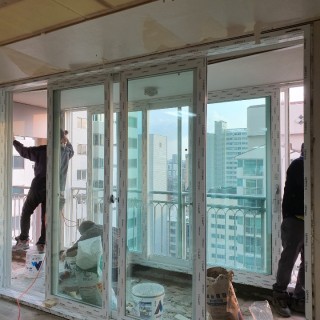 베란더샤시,폴딩도어,싱크대작업다이,거실시공.26평형